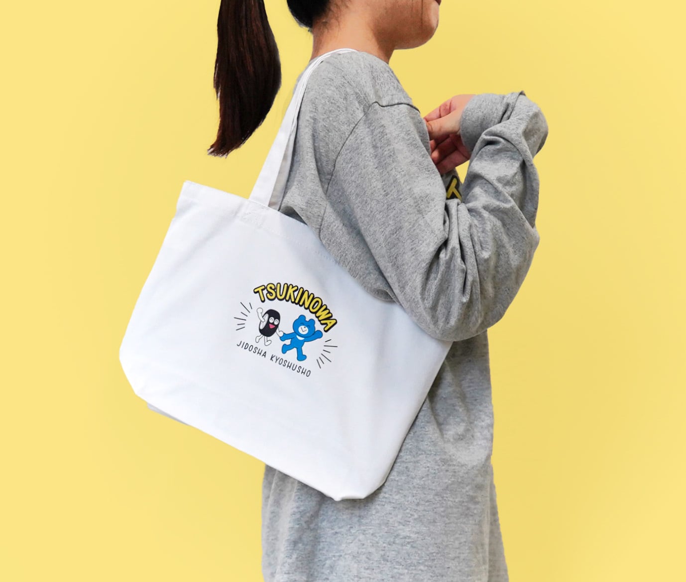 ツキノワさんとタイヤさんが仲良く手をつないだ、見ているだけで癒やされるデザインのトートバッグが登場しました!